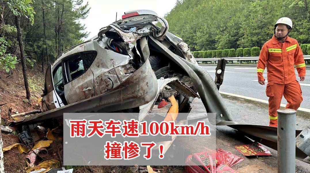 近日在泉南高速江西興國段,李某在雨天駕車時,沒將路面濕滑情況放在心上,而是以100km/h的速度行駛,結(jié)果車輛突發(fā)側(cè)滑直撞路側(cè)護欄。車頭車尾均嚴重受損,車尾更是被護欄刺穿,幸運的是未造成人員傷亡。